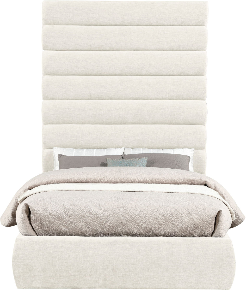 Adam - Chenille Fabric Queen Bed With 89" Headboard - Cream