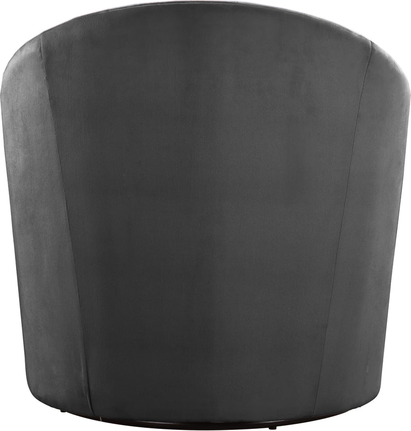 Give your living space a sophisticated makeover with this Alessio Accent Chair from Meridian Furniture. This swivel base accent chair has luxurious velvet upholstery that provides you with a soft, comfortable place to sit while you cozy up with your favorite book or curl up in front of your favorite TV show or movie. Deep button tufting on the inner back adds to its contemporary design, making it the perfect addition to any room in your home.