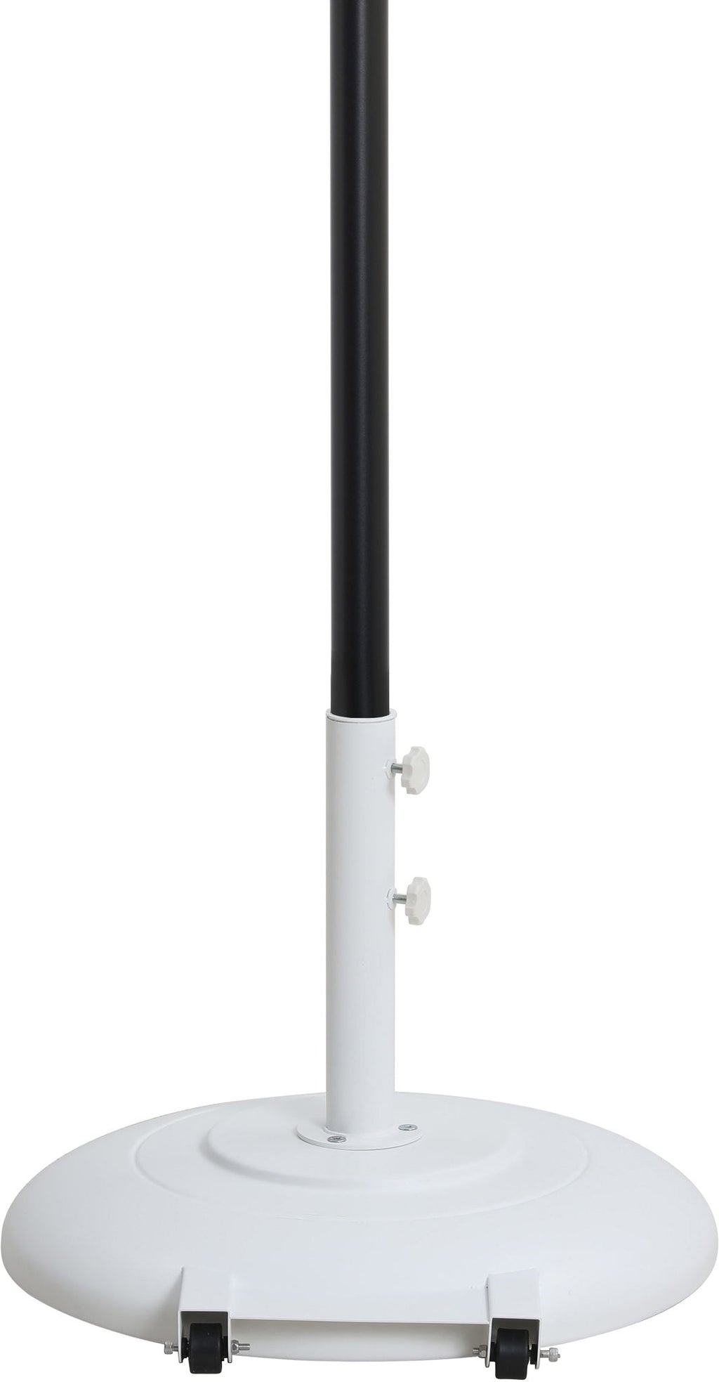 Escape from the sun's rays when you're basking beneath this Amalfi fabric and matte black aluminum patio umbrella with matte white base set. This umbrella and stand is an ideal option for adding shade to any area of your deck or patio. The aluminum pole weathers the elements with ease and is finished in matte black for a resort-inspired look. The umbrella's fabric is water and color-fade-resistant, ensuring lasting beauty in your outdoor space.