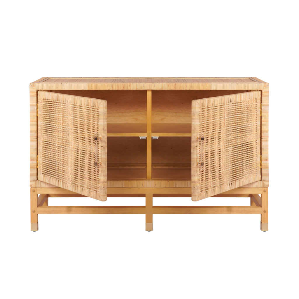 The Amara Buffet is the epitome of relaxed California-cool energy. This piece offers great storage and style with its high-quality wrapped rattan design, brass-capped legs and lucite hardware. Its natural, earthy look complements a wide variety of decor styles, the rattan also adds a touch of warmth and texture to any space.