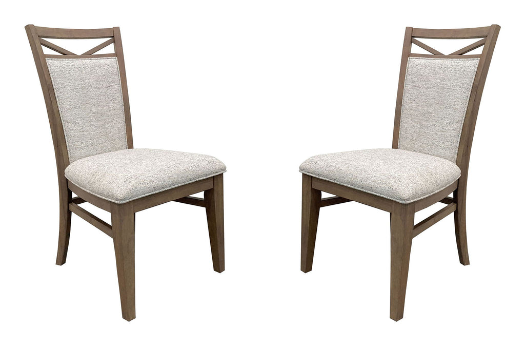 Experience comfort and style with this upholstered dining chair. The weathered natural finish adds authentic beauty to the design, while the neutral, textural, multi-tone fabric complements all furnishings. The easygoing, 100% polyester boucle performance fabric is soft to the touch and easy to clean, making it the perfect choice for any home. The decorative cut-out adds stunning detail to the front and back of the chair's silhouette, making it a statement Piece in any dining area. The finely tailored seat boasts layers of plush cushioning, providing lasting comfort for all. The solid, tapered wood legs with cross supports provide both style and strength, ensuring this chair will last for years to come. Designed to complement today's dining tables, this upholstered dining chair is the perfect choice for anyone looking to add a touch of sophistication to their dining area.