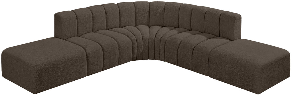 Arc - Boucle Fabric 6 Piece Corner Modular Sofa - Brown