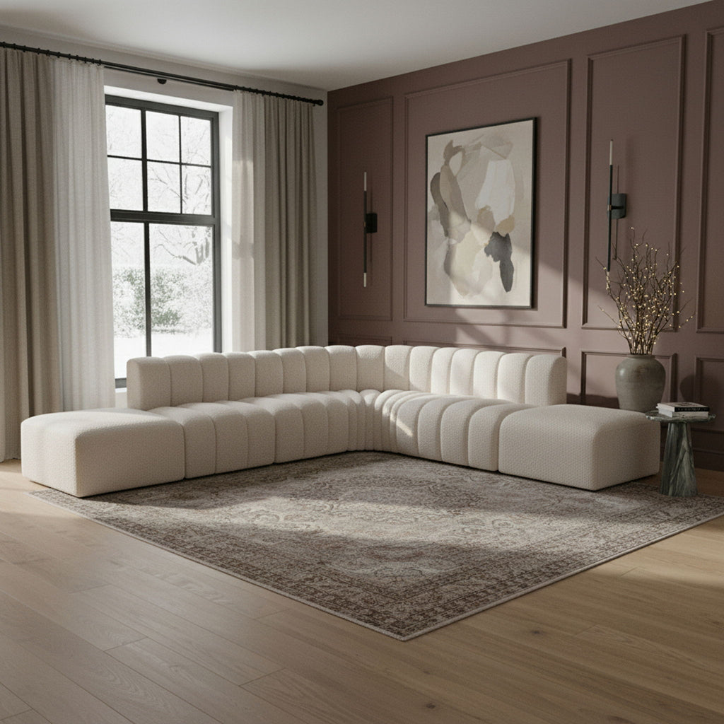 Arc - Boucle Fabric 7 Piece Corner Modular Sofa - Cream