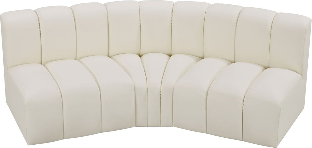 Arc - Faux Leather 3 Piece Modular Corner Sofa - Cream