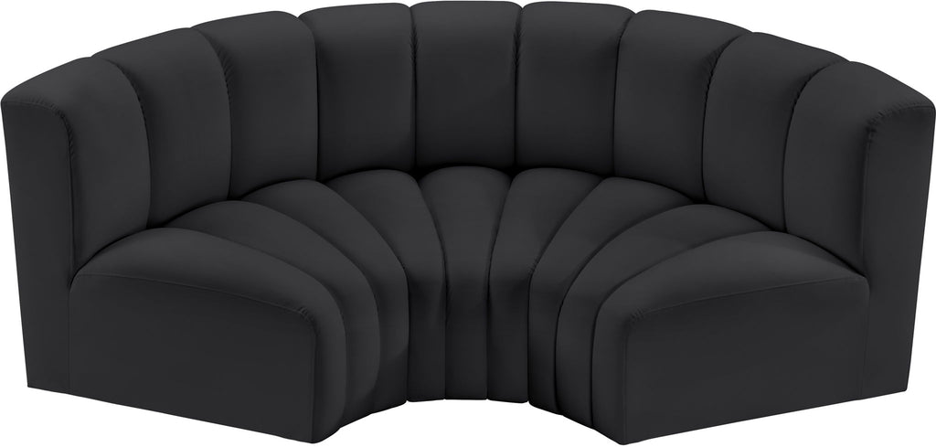 Arc - Faux Leather 3 Piece Modular U-Shaped Sofa - Black
