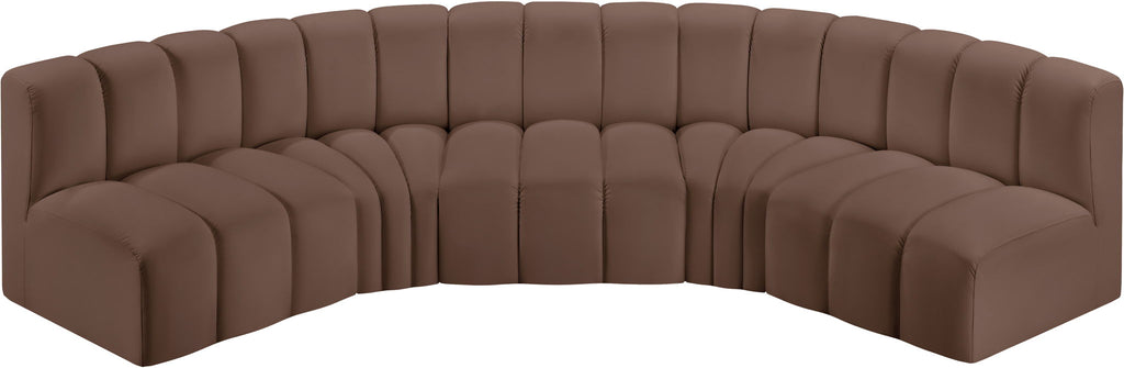 Arc - Faux Leather 5 Piece U-Shaped Modular Sofa - Brown