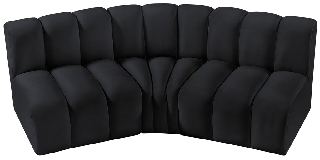 Arc - Velvet 3 Piece Modular Corner Sofa - Black