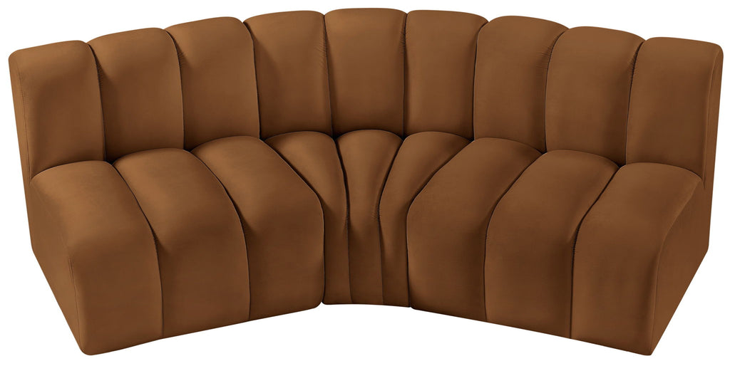 Arc - Velvet 3 Piece Modular Corner Sofa - Saddle