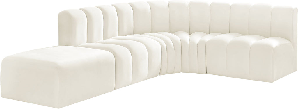 Arc - Velvet 5 Piece Corner Modular Sofa - Cream