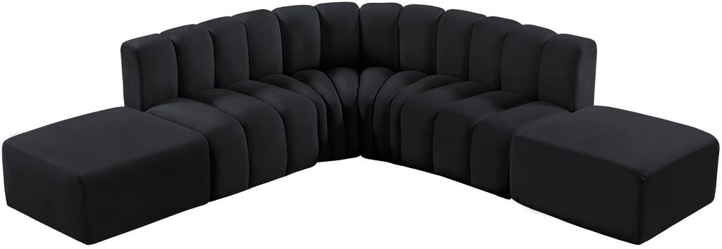 Arc - Velvet 6 Piece Corner Modular Sofa - Black