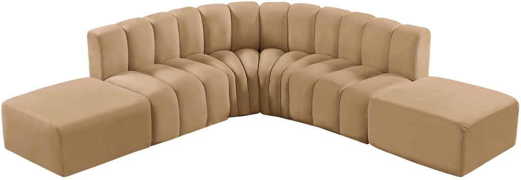 Arc - Velvet 6 Piece Corner Modular Sofa - Camel