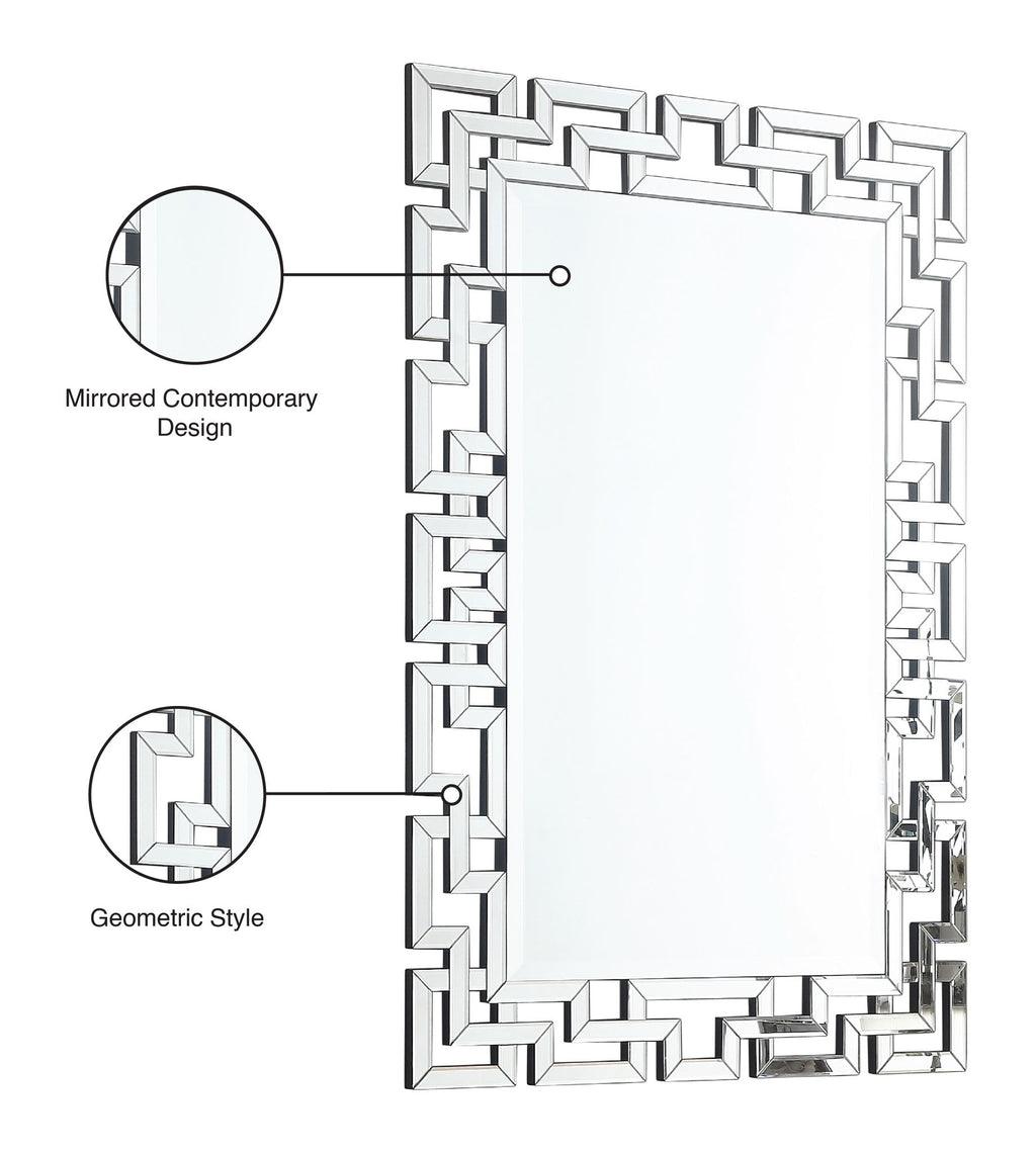 Bring contemporary panache to your home's decor with this mirror. This beautiful mirror has an intertwined geometric frame that draws the eye and stirs excitement in your space. The mirror's oversized footprint ensures that it becomes a fast focal point on your wall or when hung above a console table in a foyer or entryway. Pair it with the Aria table from Meridian Furniture for a complete look.