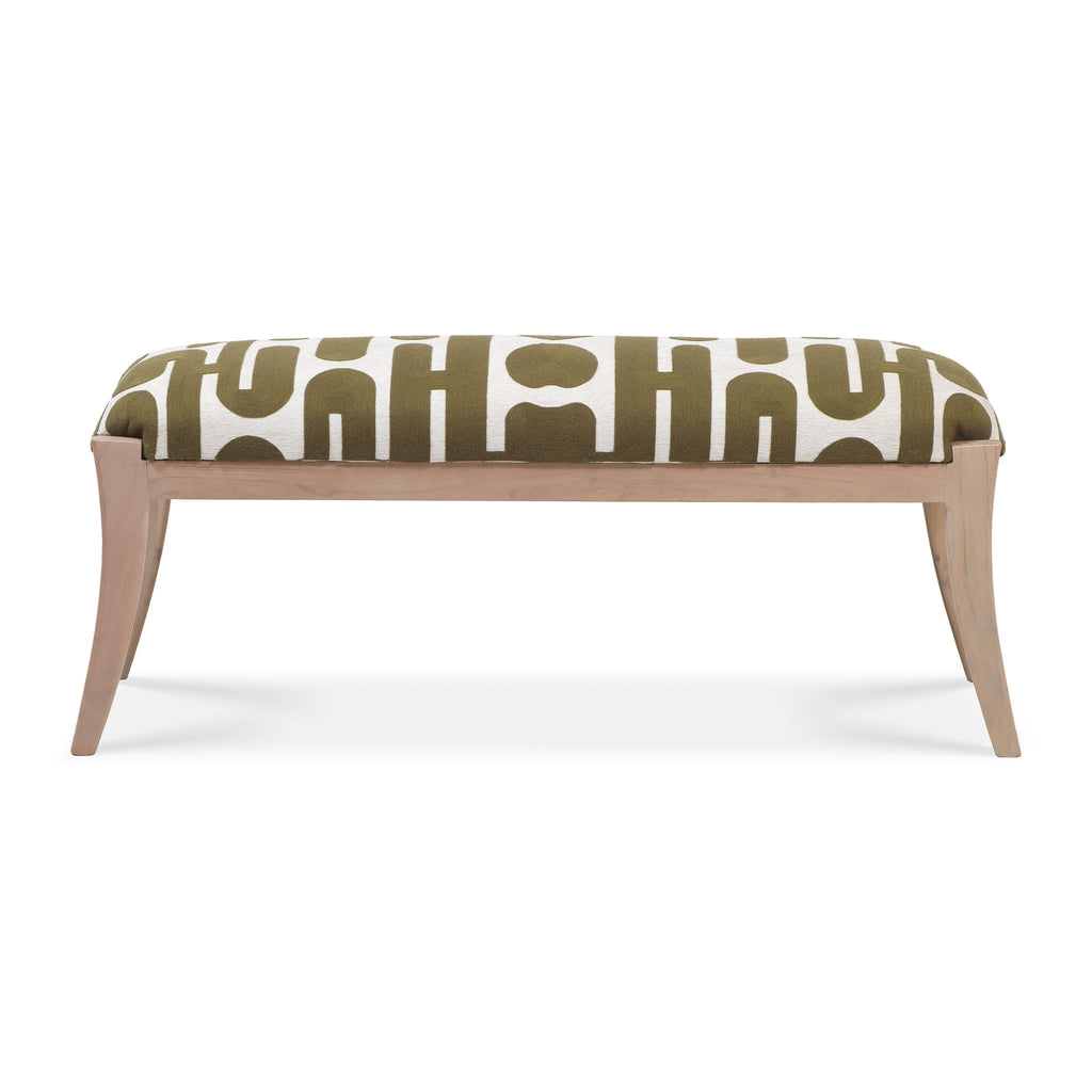 Discover the perfect blend of comfort and style with the Arielle Olive & White Embroidered Bench. Wrapped in textured natural fibers of cotton and jute, this bench boasts a solid acacia frame for enduring durability. The oversized tribal and bohemian-inspired embroidery infuses any room with a touch of artisanal charm.