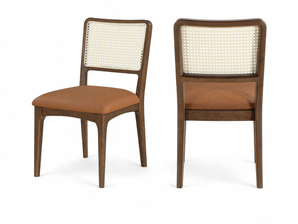 Atrium - Cane Back And Vegan Leather Upholstered Seat Dining Chair (Set of 2) - Cognac / Brushed Brown
