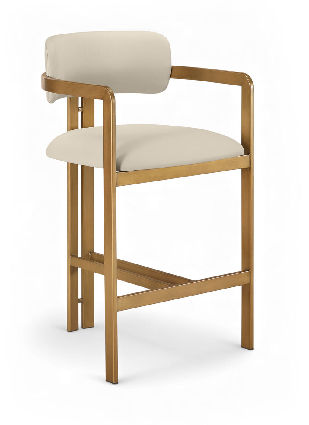 Aurum - Vegan Leather Upholstered Counter Stool - Cream / Brushed Brass