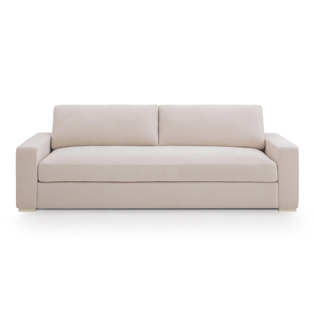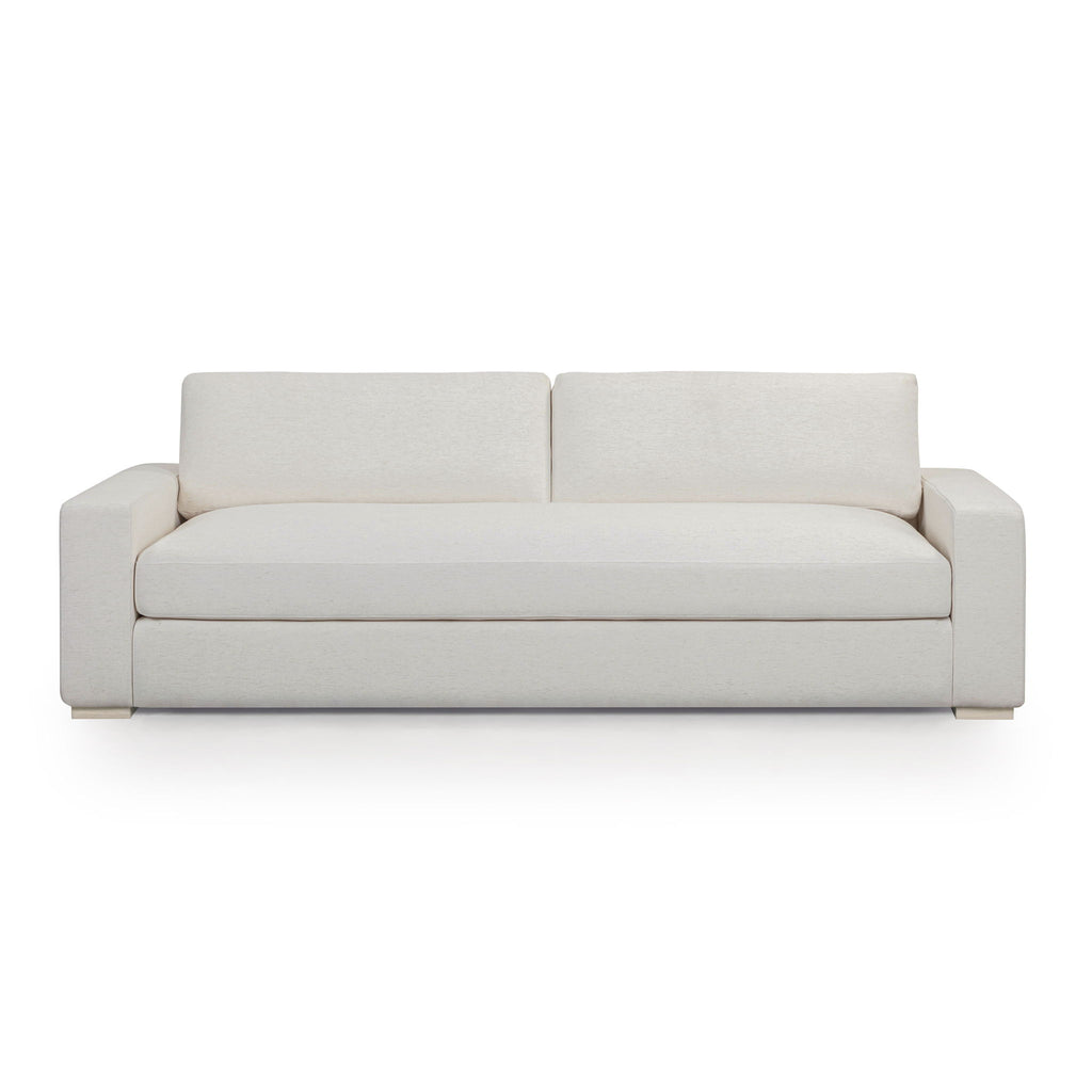 The Beckham Sofa wraps you in ultra-luxe comfort with its deep, enveloping seat and high-support cushions built for everyday lounging. Thick padded arms and solid whitewashed wood legs ground its classic silhouette, while modern fabrics bring a chic, versatile finish.