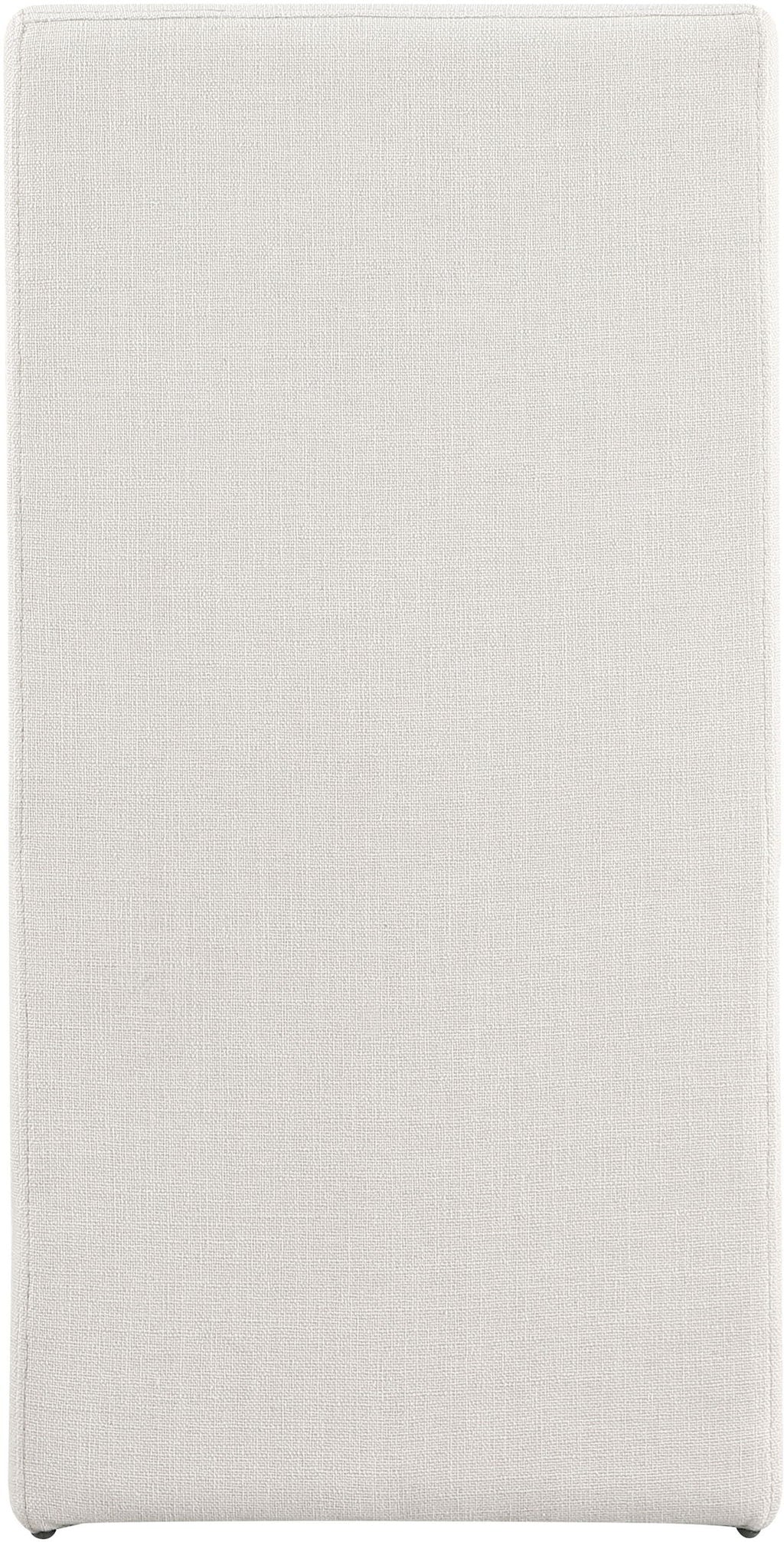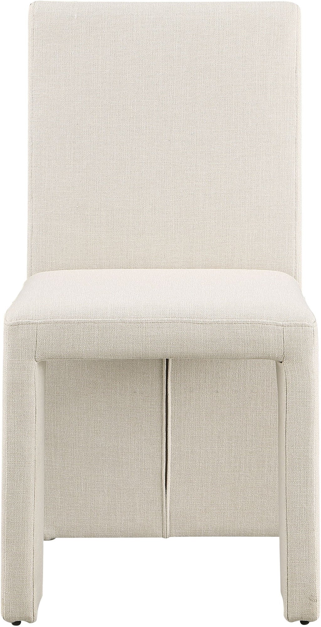 Enhance the ambiance of your dining area with these elegant Benson linen textured fabric dining chairs, which come in a set of two. Featuring a plush upholstery with a subtle white weave, these chairs are the perfect addition to your dining room makeover. The chairs' sturdy iron inner frame ensures durability and complements their art deco design, while their armless and floor-length backs add a touch of sophistication to your dining space, making it ideal for both casual meals and formal occasions. Bring a touch of style and comfort to your dining area with these beautiful chairs.
