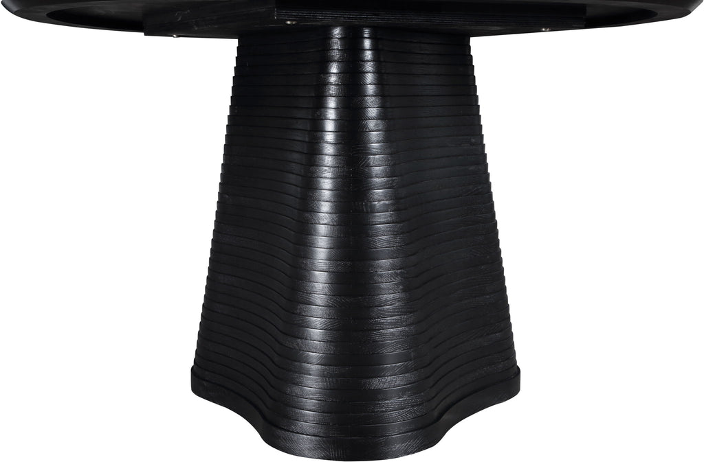 Gather your favorite people around this handsome Bernada Dining Table. Made to serve as a backdrop for small, intimate meals, this dining table features a rich black finish and a fluted base that makes it a true showstopper from every angle. It's made from a combination of solid wood, MDF, and oak veneer, giving it a durable slant that makes it ideal for busy dining spaces. The natural wood grain variation gives this table character, while its midcentury design makes it easy to blend nicely with existing modern and traditional decorative settings.