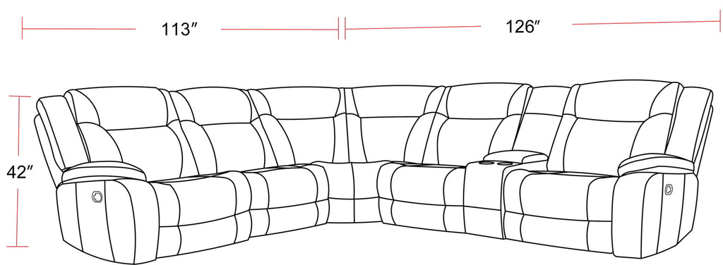 This entertainment console is a component of the Blake 6 piece Modular Power Reclining Sectional.