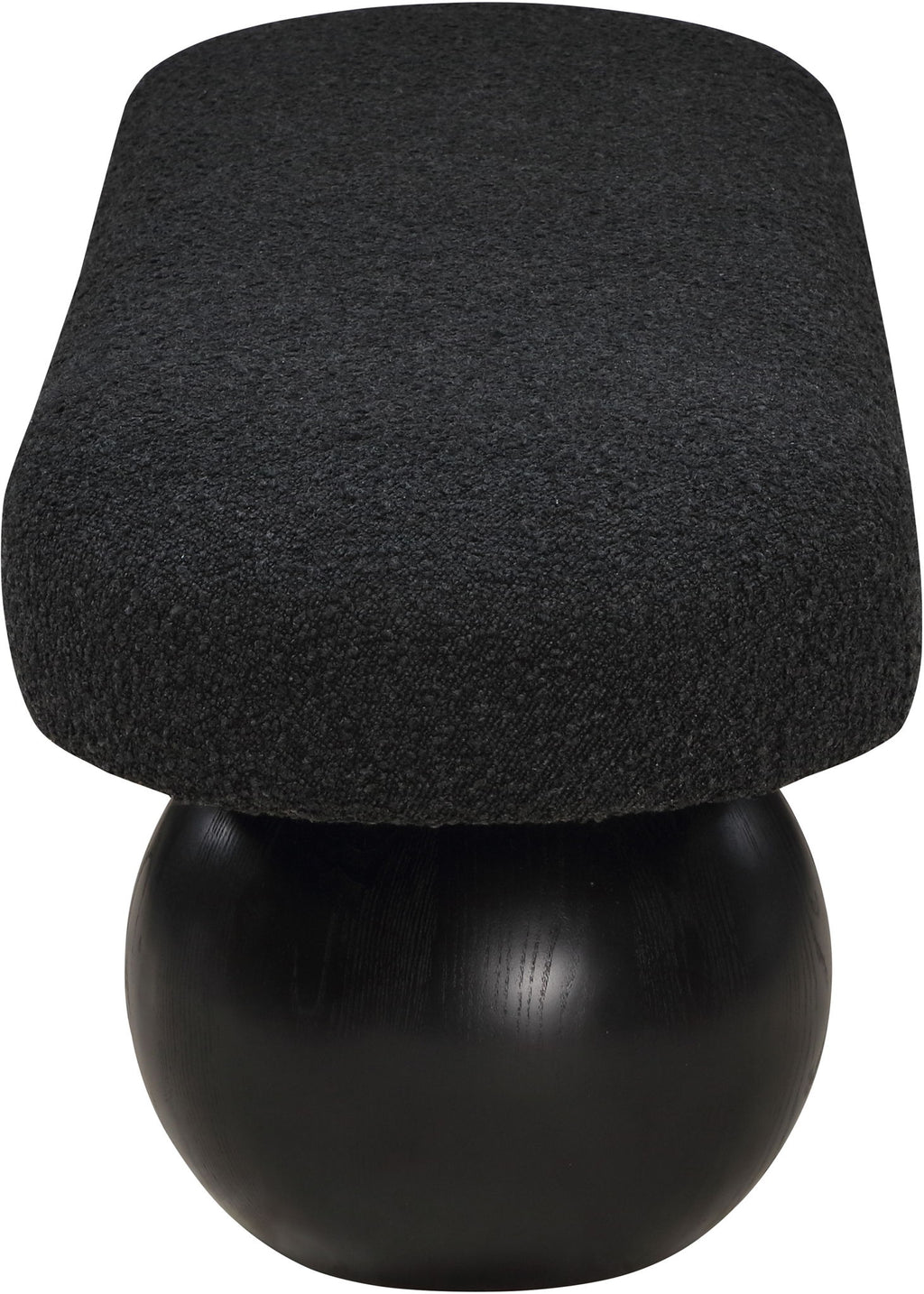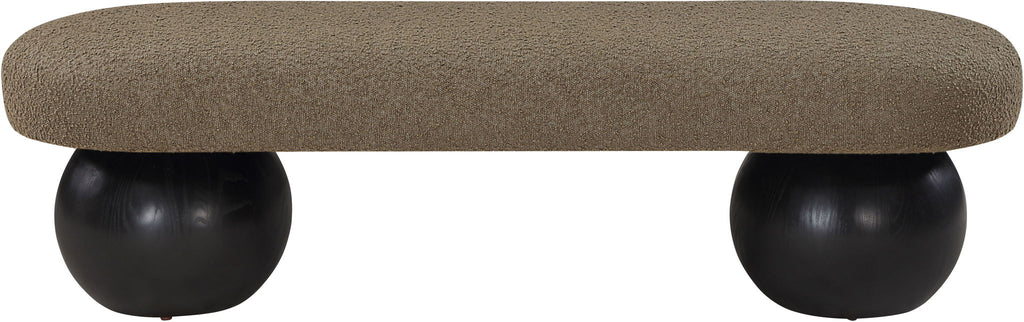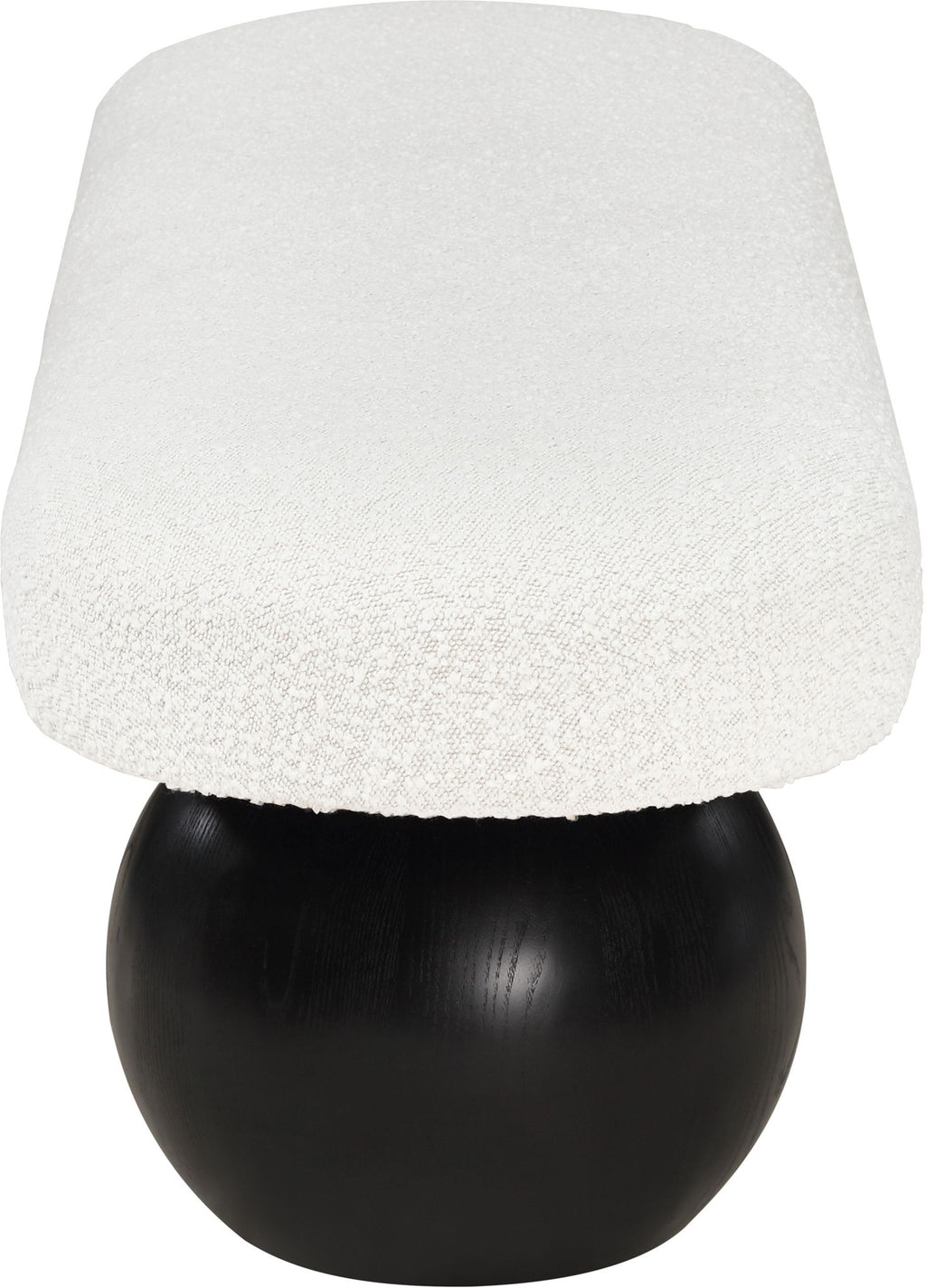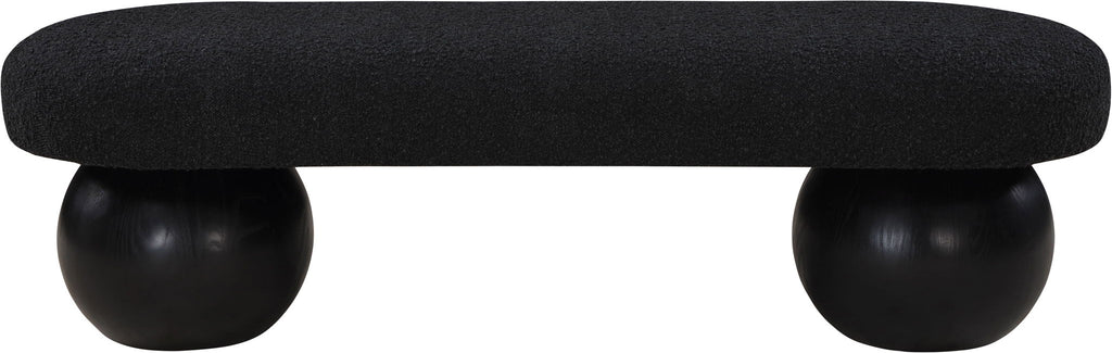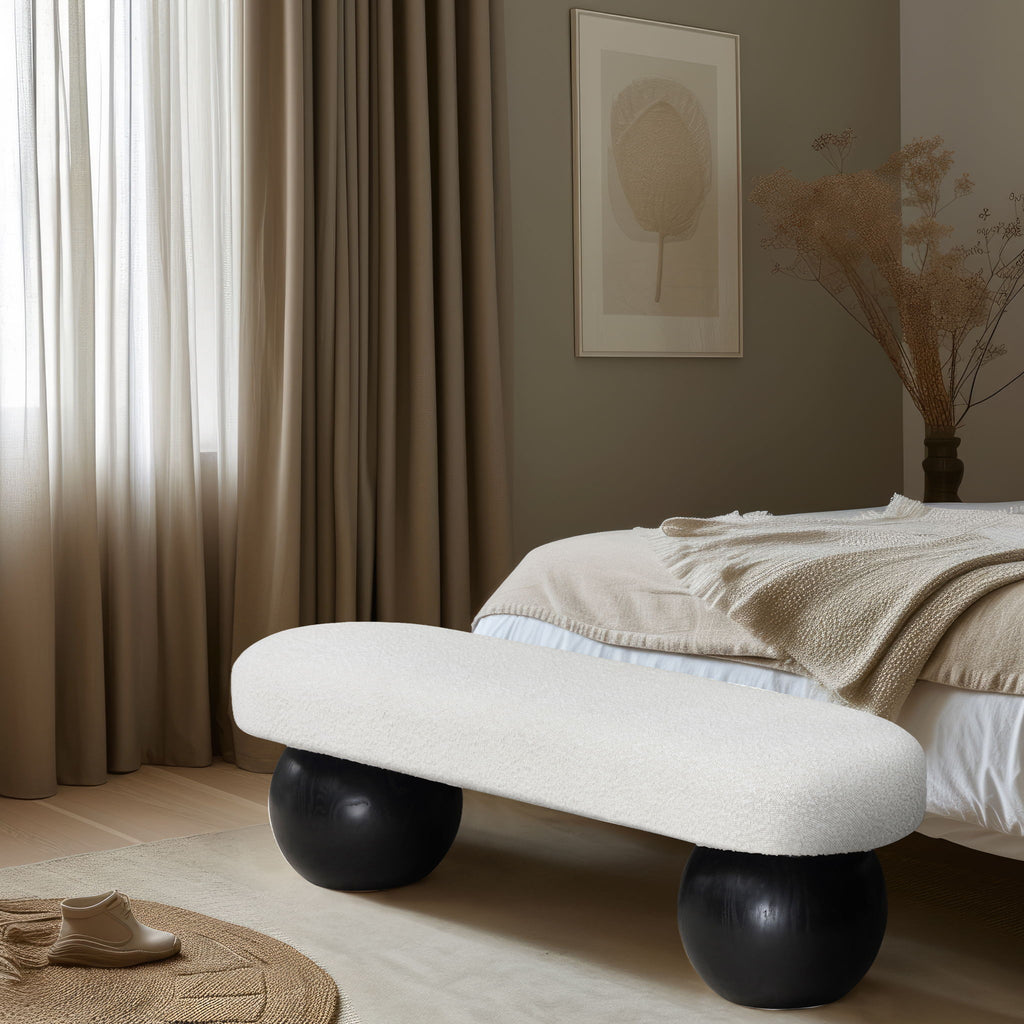 Elevate your home decor with this stunning Bowie Boucle Fabric Bench. The rich boucle fabric gives it a luxurious and sophisticated look that is sure to catch the eye of guests. The black finish on the solid ash wood ball-shaped legs adds a touch of charm and elegance to the piece. Whether you're using it as a stylish seating option in your living room or as a chic accent piece in your bedroom, this bench is sure to impress.