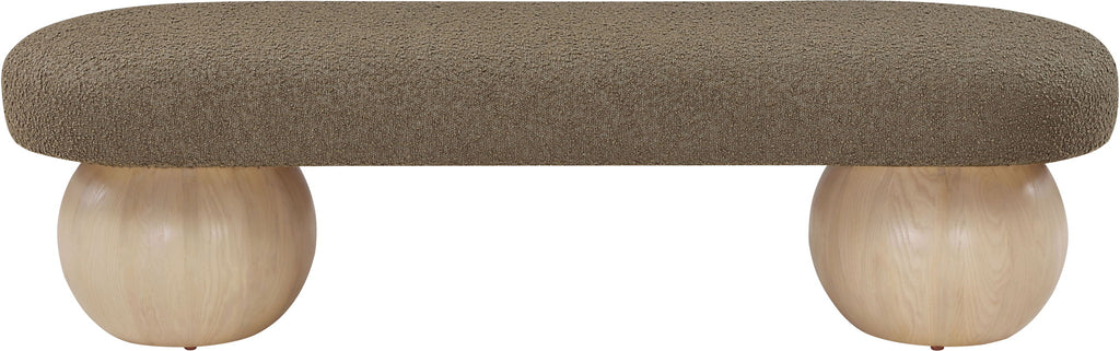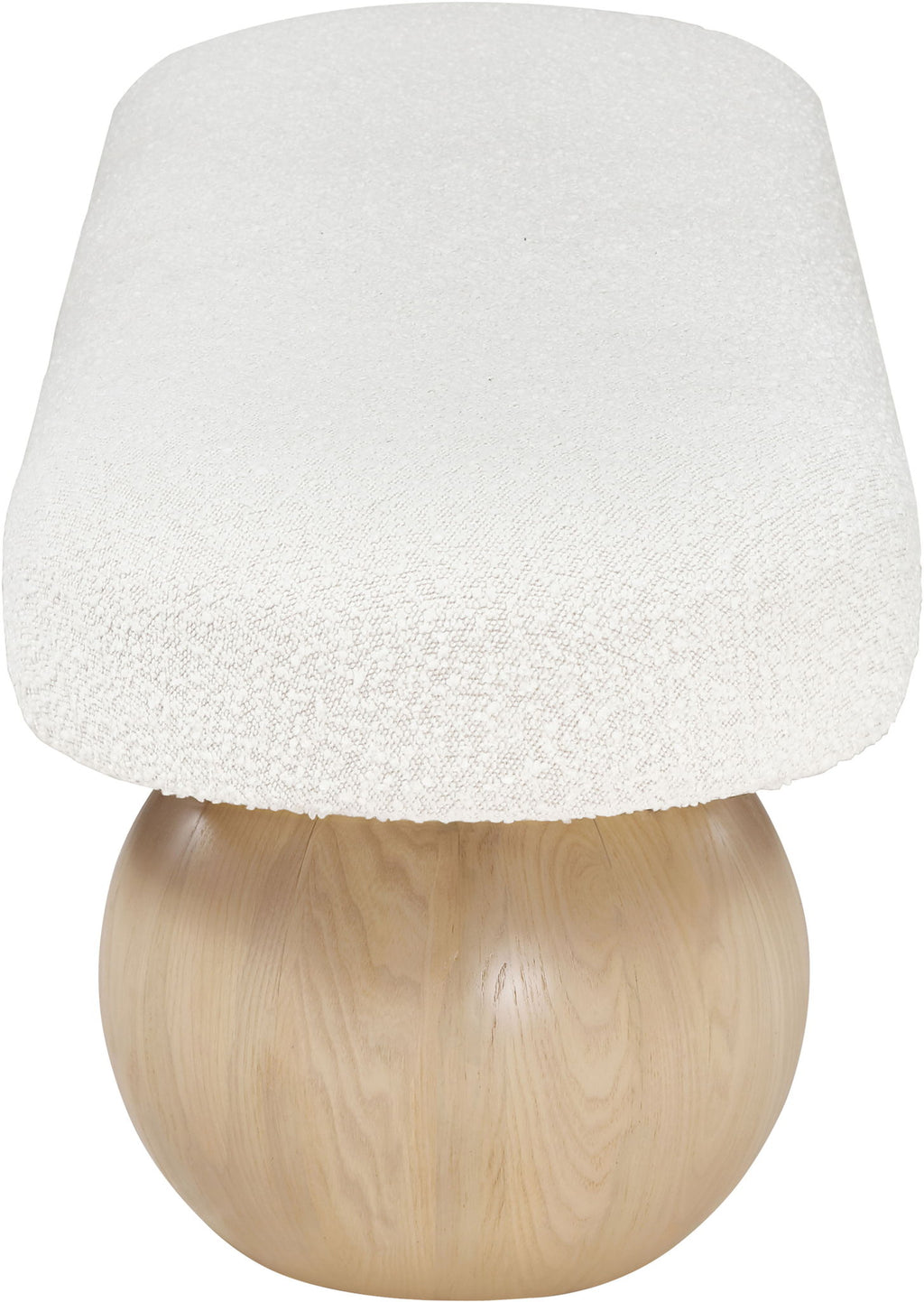 Elevate your home decor with this stunning Bowie Boucle Fabric Bench. The rich boucle fabric gives it a luxurious and sophisticated look that is sure to catch the eye of guests. The natural finish on the solid ash wood ball-shaped legs adds a touch of warmth and elegance to the piece. Whether you're using it as a stylish seating option in your living room or as a chic accent piece in your bedroom, this bench is sure to impress.