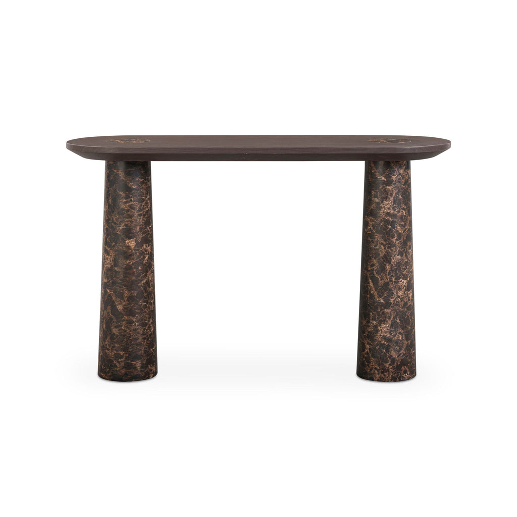 Braya - Faux Emperador Marble Console Table - Dark Brown