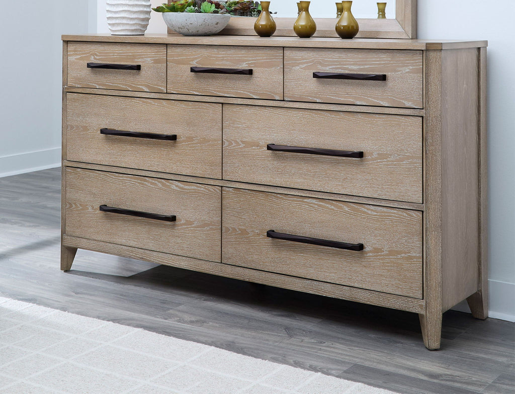 The Breckenridge dresser offers a perfect blend of timeless style and everyday function. Crafted from hardwood solids with oak veneers, it features a rich finish that adds warmth to any bedroom. The canted legs and inset drawer fronts create a distinctive, dynamic profile. Thoughtfully designed with soft-close drawers for smooth, quiet use, it also includes felt-lined top drawers for delicate items and cedar-lined bottom drawers to help keep clothes fresh.
