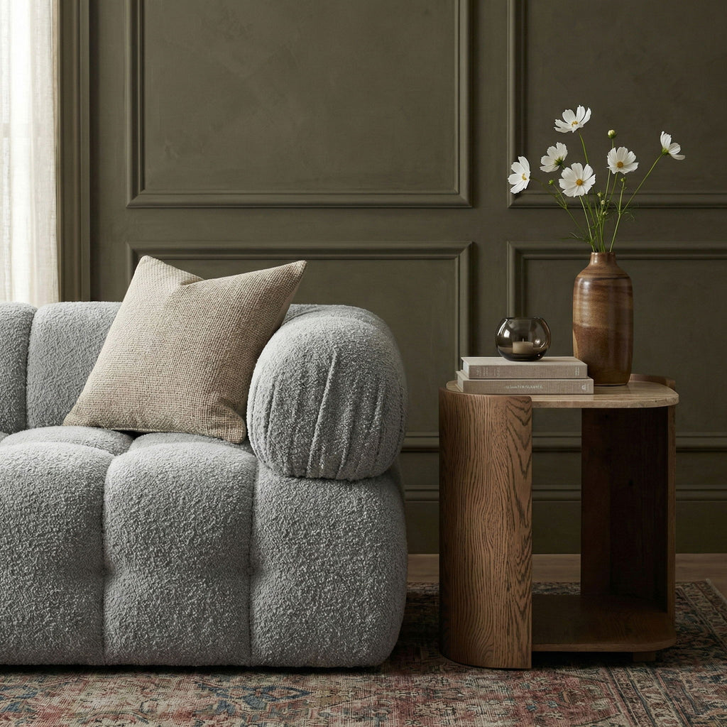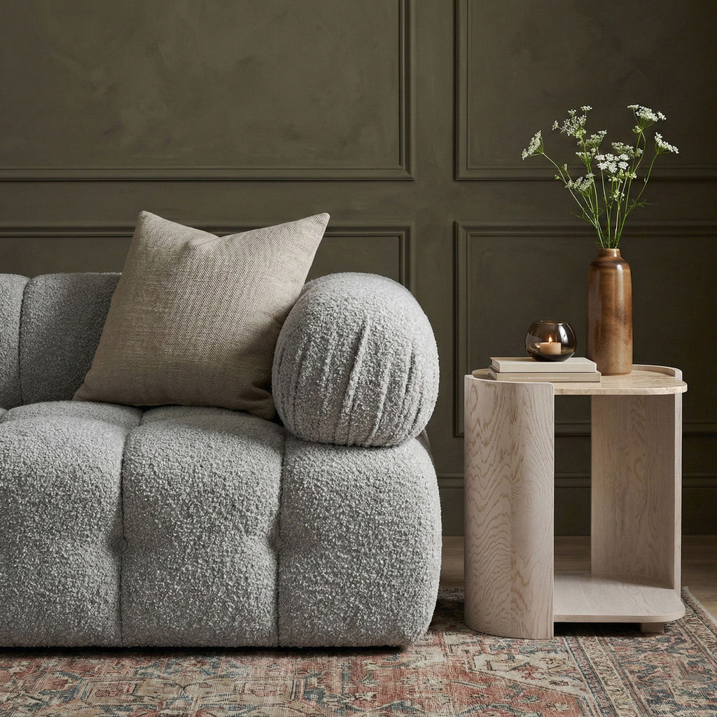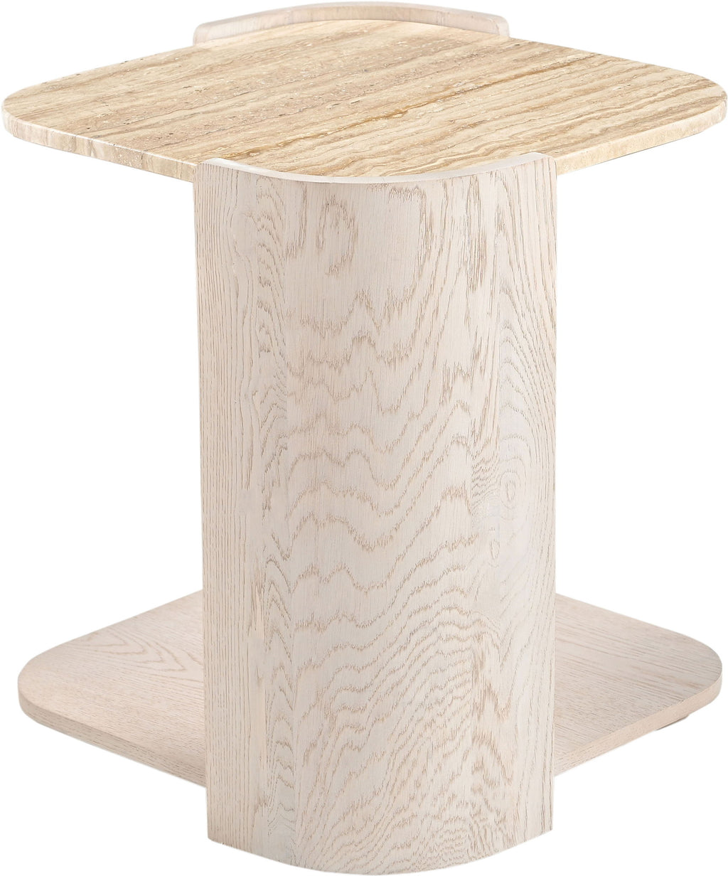 Calabria - Marble And Oak Wood End Table - Beige / Natural