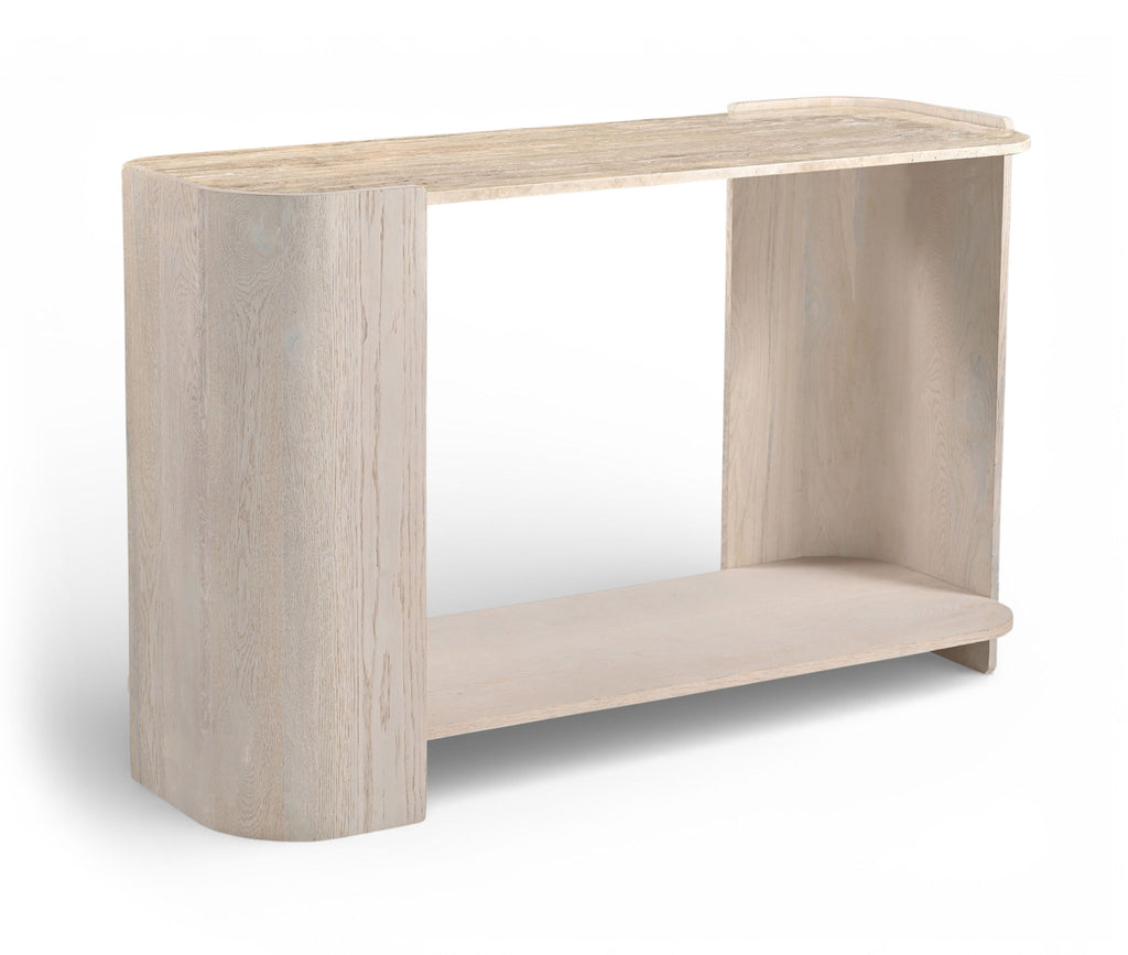 Calabria - Marble And Oak Wood Console Table - Beige / Cream
