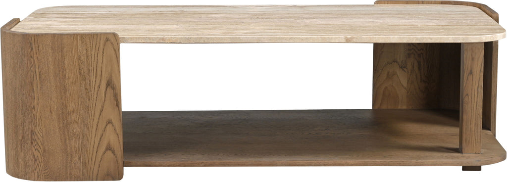 Calabria - Marble And Oak Wood Coffee Table - Beige / Cream