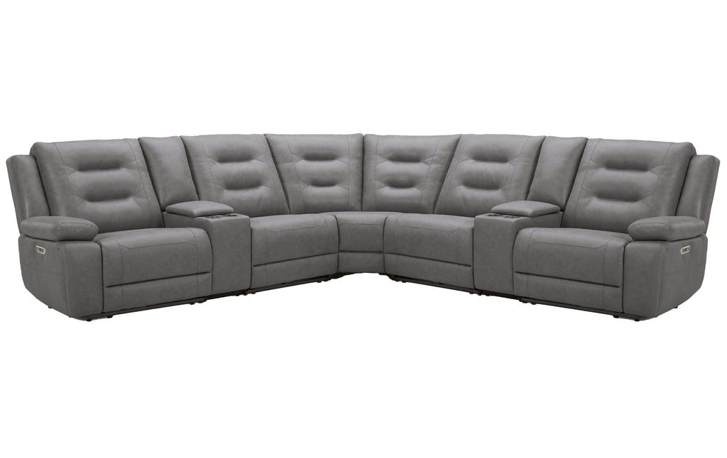 Caldwell - 7 Piece Modular Power Reclining Sectional With Power Adjustable Headrests With 2 Consoles - Tahoe Fog