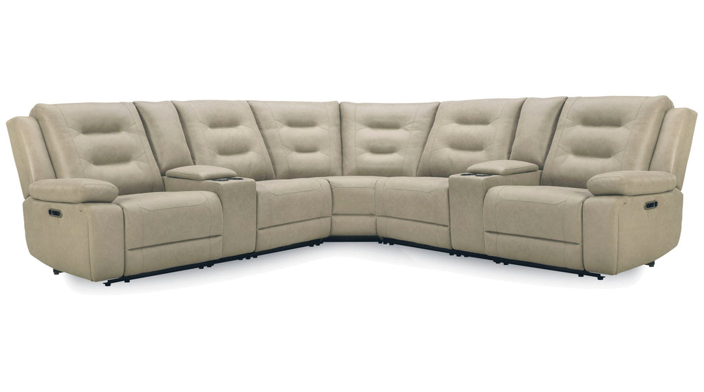 The Caldwell modular reclining power sectional is perfectly scaled for smaller spaces. Offering a neutral colored high-performance fabric cover, Caldwell features generously padded arms and USB charging in the easy-to-operate switches. Center console includes cup holders and storage space to tuck away all the necessities! Want to go cordless? Caldwell is ready to easily mount any FreeMotion® bracket and battery, allowing you to float it wherever you want, no wall required!
