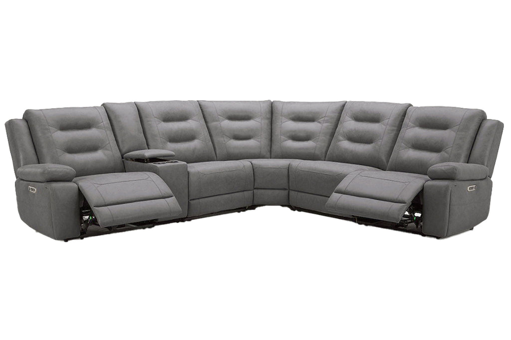 Caldwell - 6 Piece Modular Power Reclining Sectional With Power Adjustable Headrests - Tahoe Fog