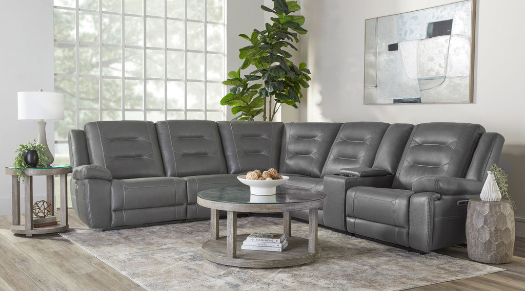 Caldwell - 6 Piece Modular Power Reclining Sectional With Power Adjustable Headrests - Tahoe Charcoal