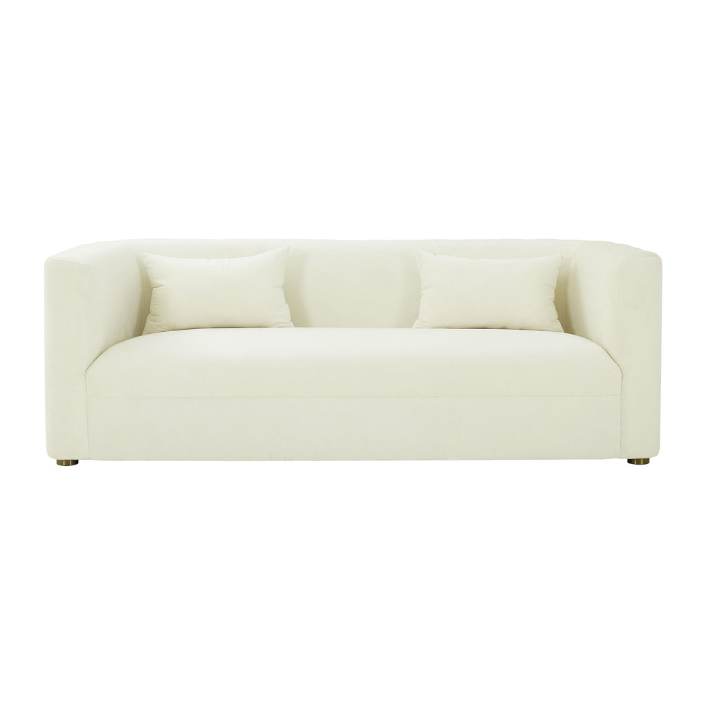 Graceful and eye-catching, the Callie Sofa is the epitome of modern glamour. Its curved silhouette, scalloped tufted back and beautiful stainless steel legs, add character and style to any room. Available in multiple color options.