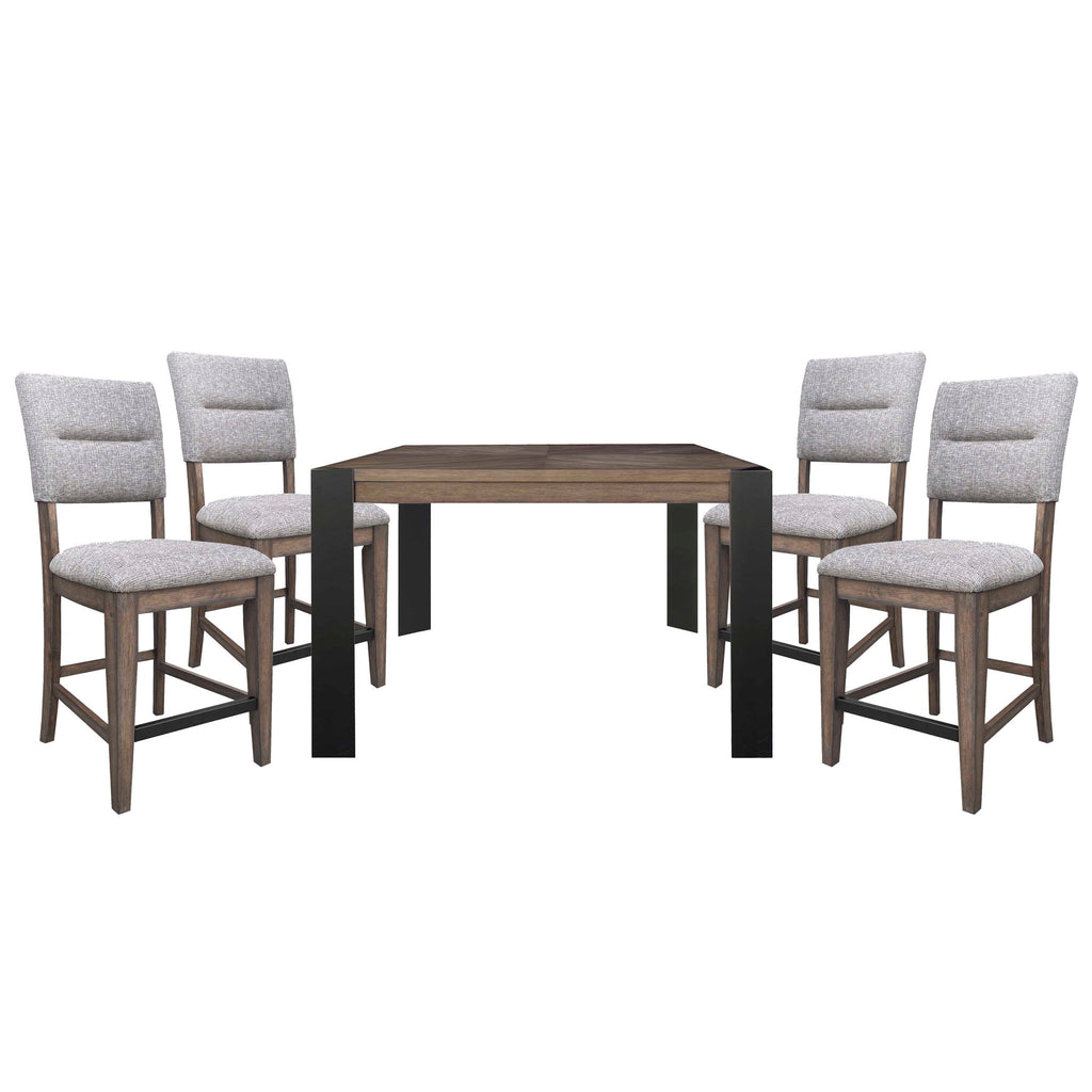- Set includes 54in Square Counter Height Table and Four Upholstered Counter Stools