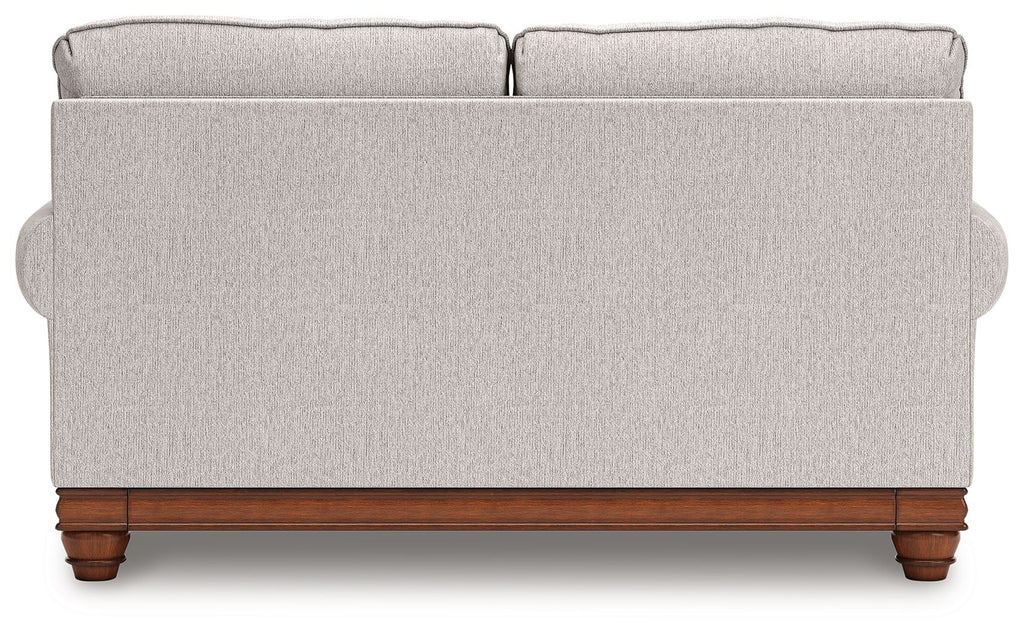 Fresh yet classic. That’s the beauty of this loveseat. Dressy and also soft to the touch, its organic neutral-toned upholstery is sure to bring a transitional farmhouse aesthetic to your living space. Accent pillows in windowpane plaid infuse a cozy and inviting farmhouse sensibility, while a full wraparound base and decorative turned legs complete the loveseat's timeless look. It's the perfect place to unwind with your bestie after a long day.