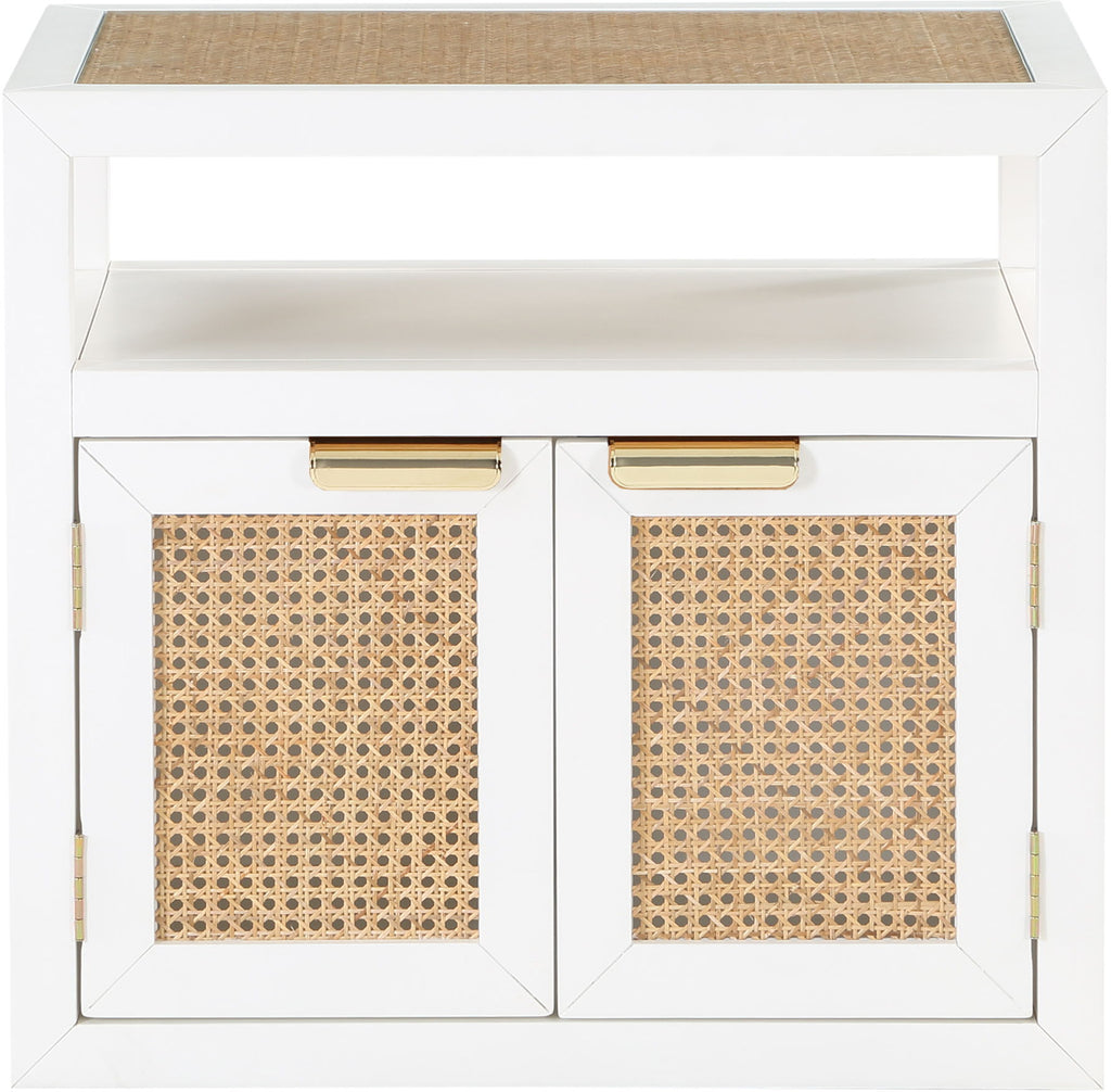 Introduce the essence of midcentury design to your bedroom with the elegant Cole Nightstand. The striking finish and the natural cane tops and door fronts create a beautiful contrast that is sure to catch the eye of anyone who enters the room. The nightstand comes with a complete set of brushed brass and chrome iron handles, making it easy to blend it in with your existing decor and design scheme. With its timeless appeal, this nightstand is perfect for those who appreciate the balance of form and function in their furniture.