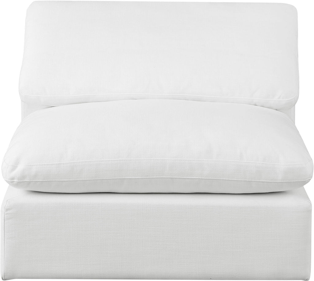 Give your space a whole new look with this Comfy linen textured fabric armless chair. This handsome chair fits nicely with other items in the Comfy collection and is a versatile seating option designed for adaptability, comfort and style. Wrapped in rich durable linen textured fabric upholstery, this chair offers a plush embrace of overstuffed down feather cushions, carefully crafted to deliver the highest level of comfort. The perfect seat for creating an oasis for relaxation, this chair has thick foam surrounding its frame for added support and coziness.