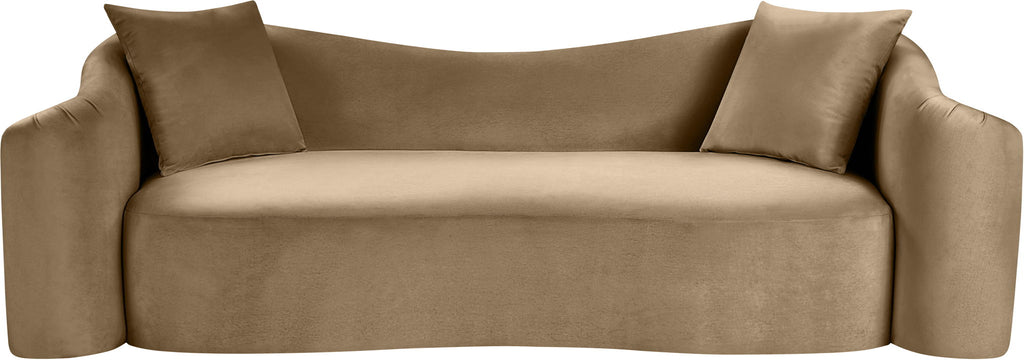 Indulge in pure luxury with the Destin velvet sofa, featuring plush, oversized cushions and soft velvet upholstery for optimal comfort. Wrap yourself in comfort with a structural masterpiece offering a refreshing yet timeless aesthetic. The organic curves and plush velvet create a truly unique and eye-catching design.