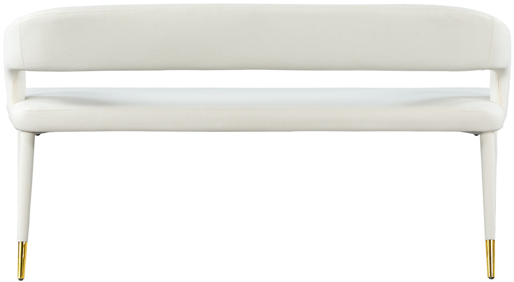 Enjoy extra seating space in your home with this Destiny bench. Its soft upholstery offers coziness while sitting, ensuring you and your guests are always comfortable. A rounded, open back provides additional comfort as well as style. Gold tipped upholstered legs give this bench an extra touch of style that complements any contemporary living space. Its long length guarantees that you ll always have extra space to seat family and friends who visit.