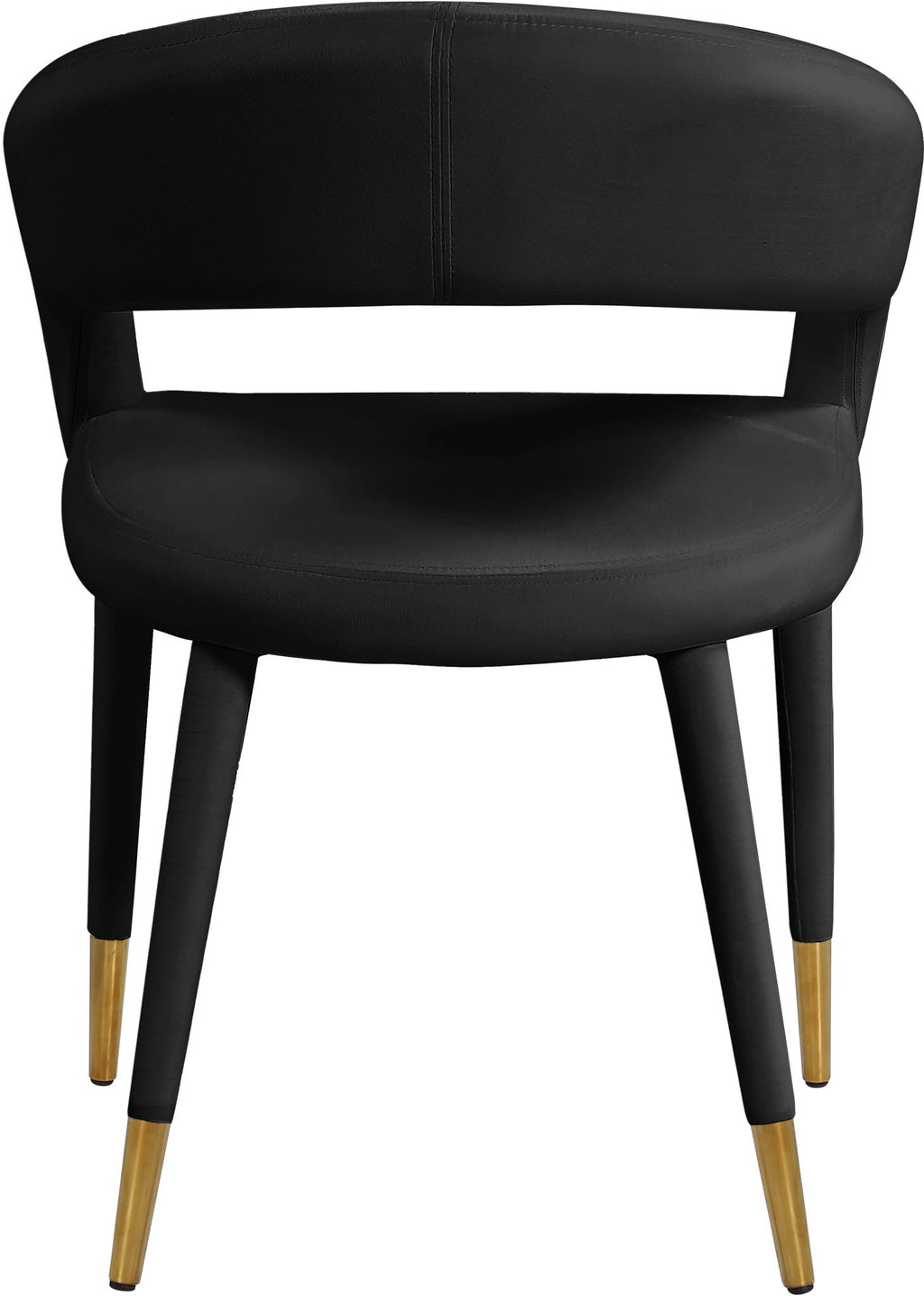 Settle in for a meal with friends seated in this Destiny dining chair. Soft upholstery makes this dining chair a sleek and inviting option for pairing with your favorite dining table. The rounded back adds comfort to mealtime and lends the chair a chic, eye-grabbing touch, while tapered legs topped with tips give the chair an elegant finish.