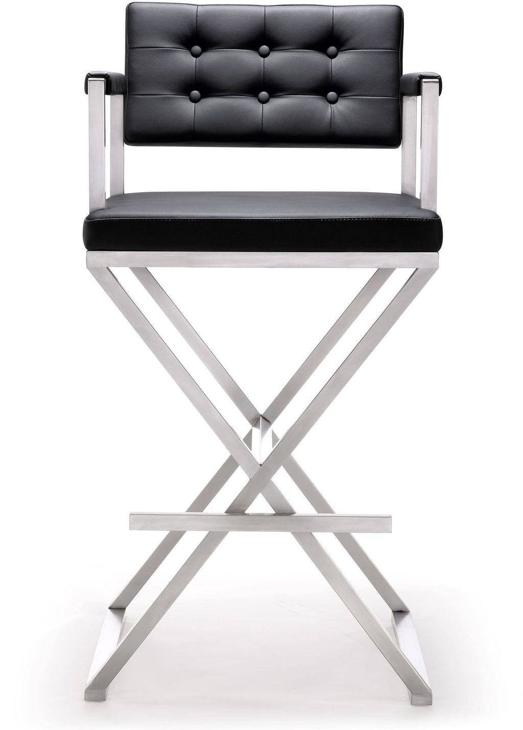 Furnish your kitchen or bar area in contemporary style with the Director stool from TOV. The solid stainless steel frame provides a sturdy base, while the plush extra deep seat and footrest ensure maximum comfort. The combination of angles and gentle curves gives this stool an eye-catching appearance, while the neutral color allows it to match well with any decor.