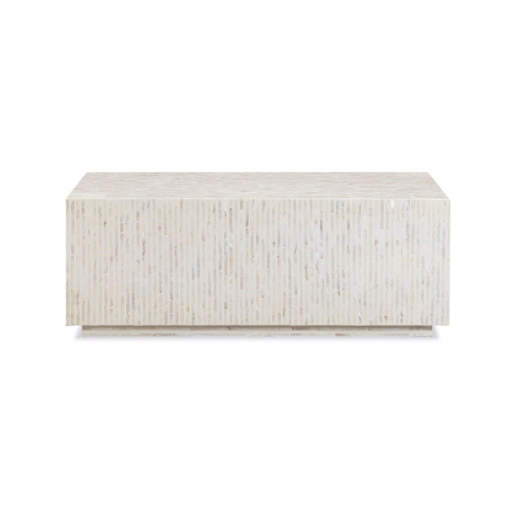 The Earl table sparkles with charm. Each version showcases natural shells that are hand placed and hand polished, creating a playful linear pattern that feels fresh and radiant. Whether in light blue Capiz or creamy Mother of Pearl, it brings eye catching texture and a sweet, uplifting glow to your space.
