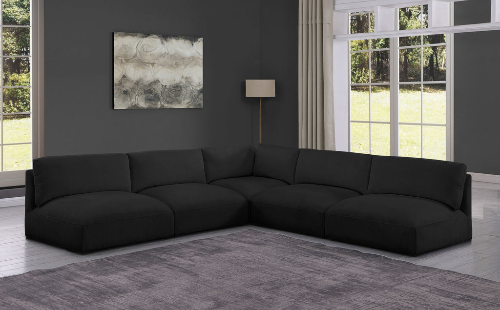 Ease - 5 Piece Modular Corner Armles Sectional - Black