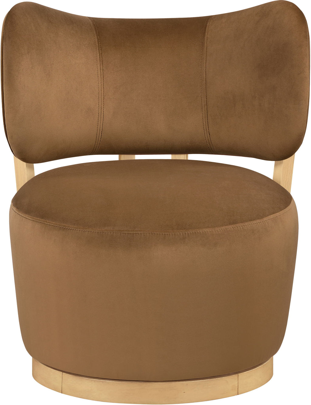 Elara - Velvet Upholstered Swivel Accent Chair - Saddle / Stained Natural