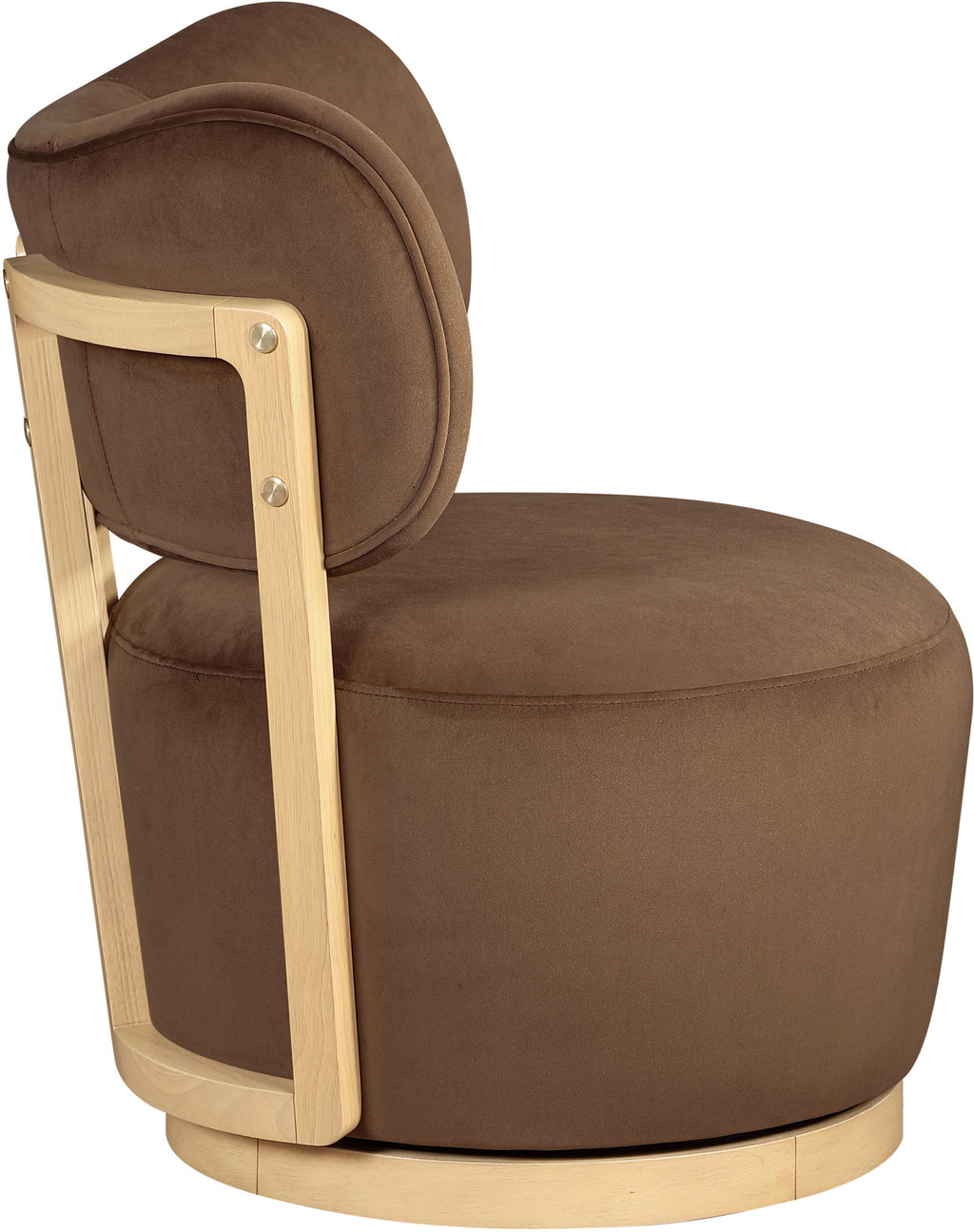 Elara - Velvet Upholstered Swivel Accent Chair - Brown / Stained Natural