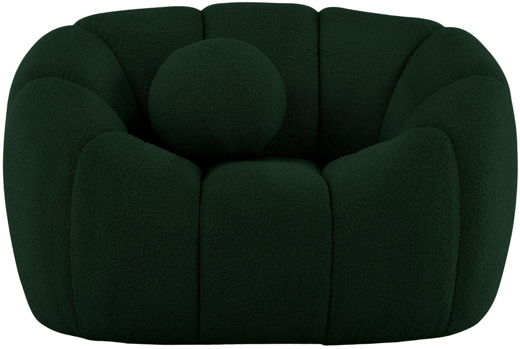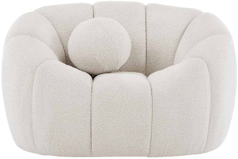 Sit back and relax in casual style when you bring home this Elijah boucle fabric chair. Inspired by the unmistakably relaxed vibe created by a classic bean bag, this inviting chair features a rounded design with deep channel tufting for added support and resilience. It comes with an accent pillow for even more welcoming comfort, and the chair is upholstered all over with rich boucle fabric that beckons you to sit, rest, and take it easy.