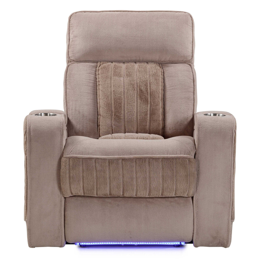 Spice up your movie nights with the Equinox Power Recliner. This reclining seat also features armrest storage and an independently operating power headrest for personalized comfort. Cool ambient floor light at the base, upholstered channels on the back and leg rests and oversized welt cord ensure that Equinox is the best looking seat in the house!