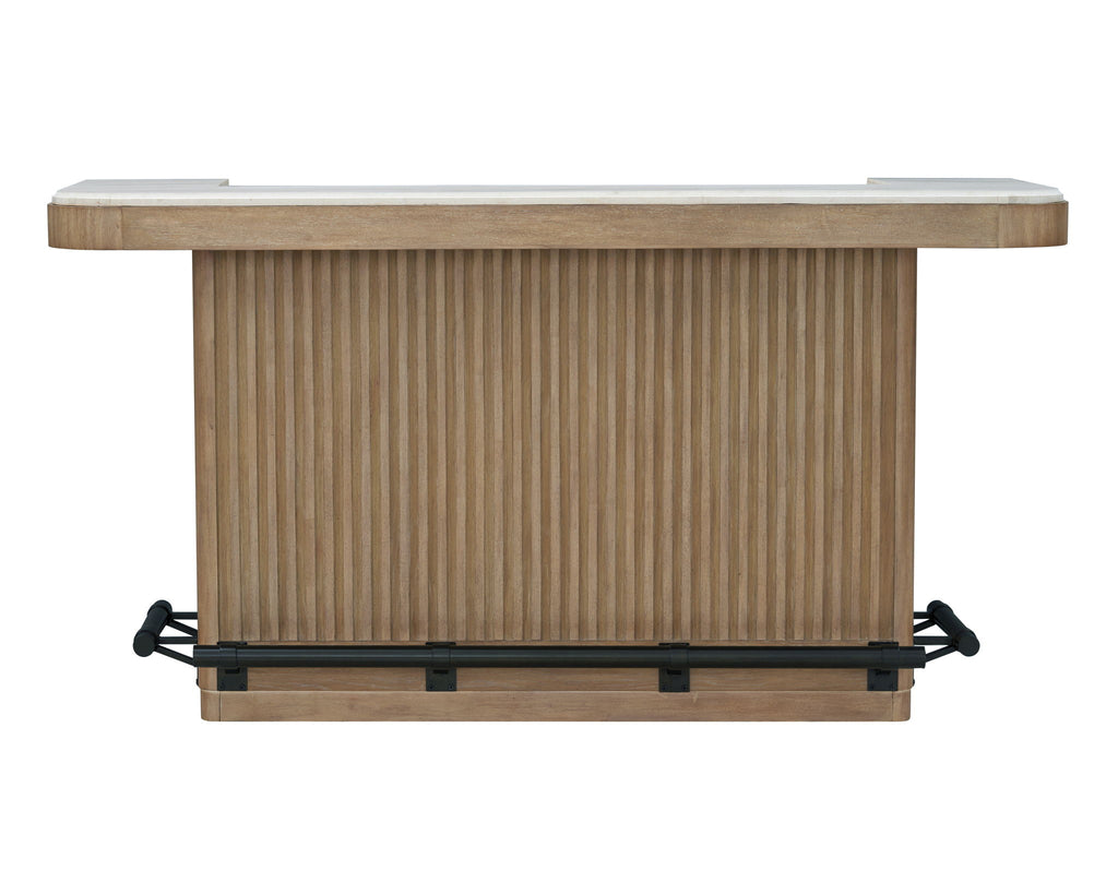 - Set includes stone top 78" bar and two swivel barstools from the Escape Collection